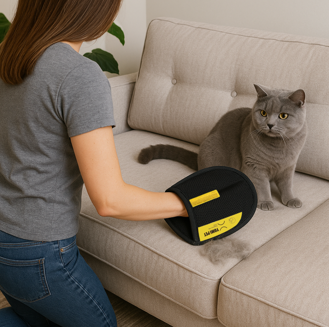 הכפפה עשויה מבד אלקטרוסטטי ייחודי שאוסף את שיער בעלי החיים בעדינות וביעילות מכל משטח — ספה, שמיכה, שטיח או מושב רכב.
